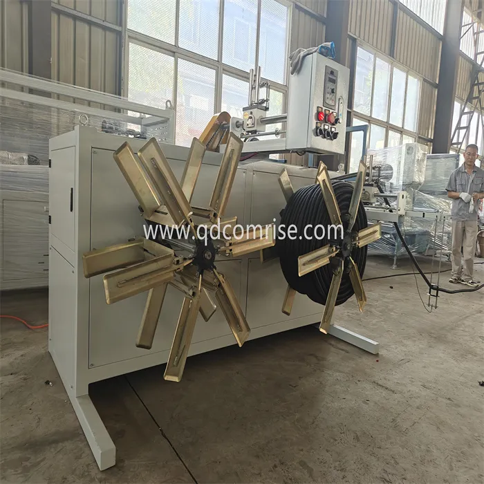 De färdiga rören är staplade eller lindade för förvaring och transport.