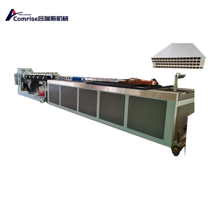 PVC-dörrproduktionslinjen används huvudsakligen för att producera PVC-plastprofiler med olika tvärsnittsformer och höjder. Ytan på PVC -profiler/paneler kan behandlas genom att skriva ut och beläggning med glansig olja, värmeöverföringstryck eller laminering, som kan användas för kök, badrum, balkonger och mer.