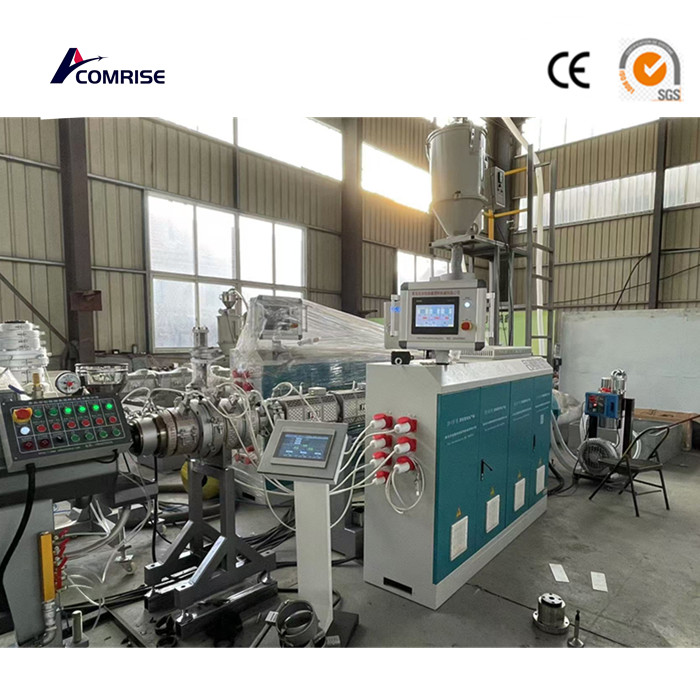 PE/PP/PPR/HDPE/LDPE -rörproduktionslinjen kan användas för att producera PPR heta och kalla vattenrör, PE -rör och kiselkärnledningar. Denna produktionslinje kan användas för att producera enstaka färgledningar från en enda extruder, eller för att producera flerskikts färgledningar från flera extruders genom CO-extruderingshuvuden.