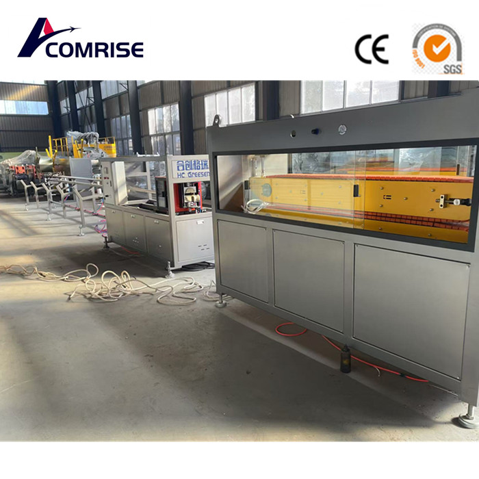 Enkel skruv extruder → färgsträng och flerskikts co-extruder → mögel → vakuumkalibreringstank → spraykylning vattentank → dragning → ingen dammborttagare → stapel → slutproduktinspektion och förpackning