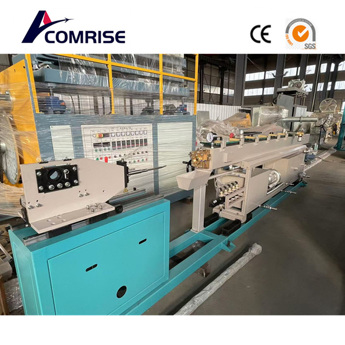 Hela utrustningen består av matningssystemet, droppscreeningsanordningen, extruder, skärmväxlare, mögel, kalibrator, vakuumkylningssystem, stansdetekteringsanordning, dragenhet, lindningsmaskin och andra huvudkomponenter. Hela utrustningen styrs av PLC och drivs av servomotorer, säkerställer mer exakt kontroll och säkerställer automatiseringen av hela produktionslinjen.