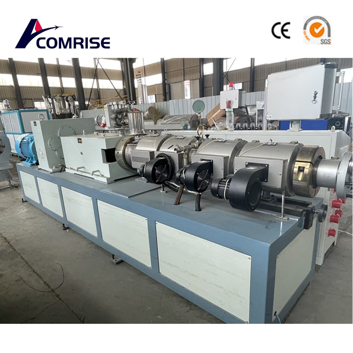 Denna uppsättning består av den koniska tvillingskruvsextrudern, vakuumkalibreringstank, skärning, skärare, stackare eller bellingmaskin etc. Extrudern och transporter, till exempel två caterpillarer. krav.Det kan välja Saw Blade Cutting Type eller planetär skärningstyp.