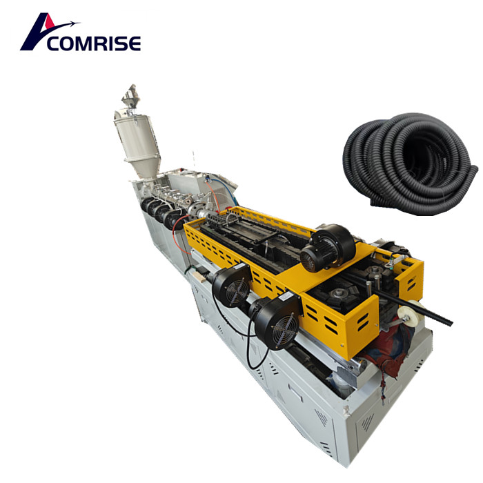 1. Denna enstaka väggkorrugerade rörmaskinlinje använder huvudsakligen PVC, PP och PE som råvaror för att producera små korrugerade rör med dubbla väggar.